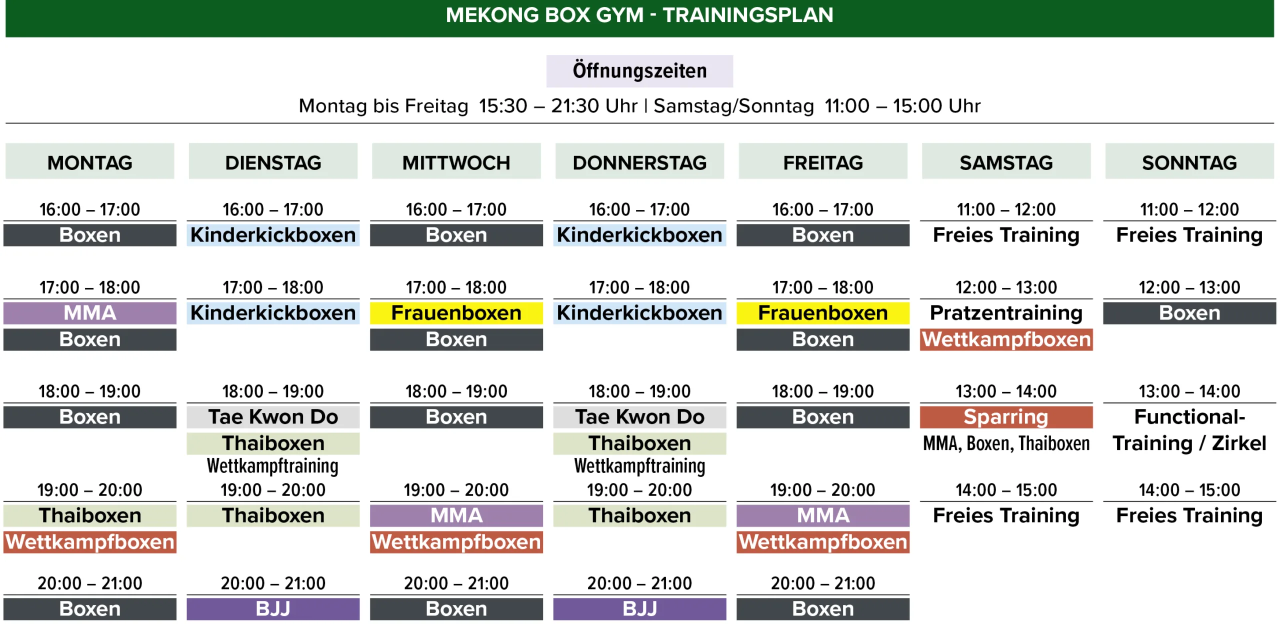 Öffnungszeiten Trainingszeiten